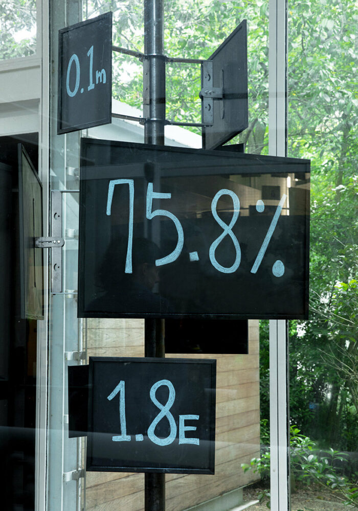 We collect the data of the choices that people make, and those answers dictate what is written on the Echogram, composed of seven blackboards. There seven environmental climate change statistics are written, from global temperature, sea rise, co2 density, availability of water, migrations numbers, economic inequality and consumption. It allows people to fictionally imagine how they would control the climate if they could.