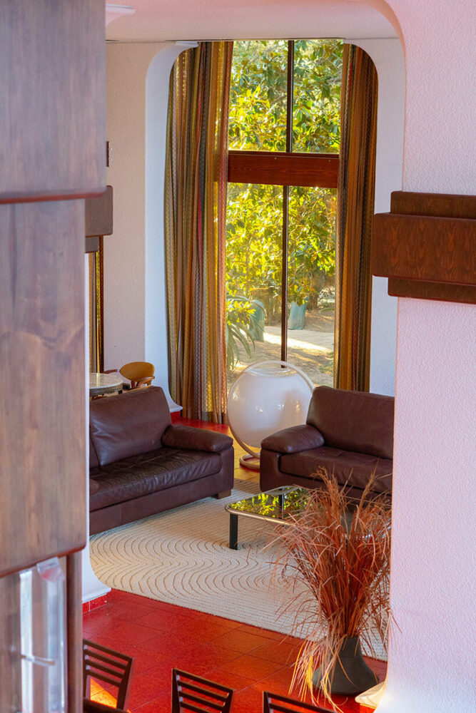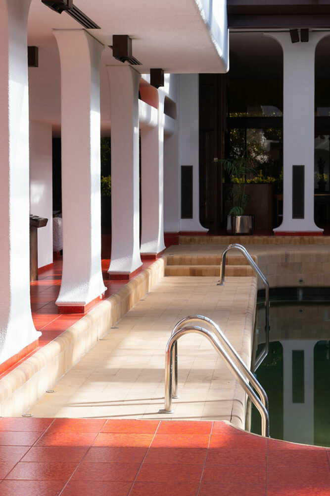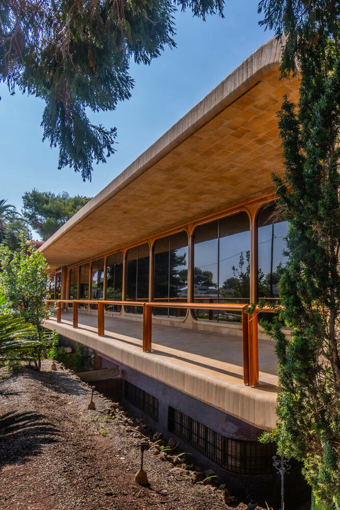 the project is unified by curved corner details, from the window frames, roof, and swimming pool